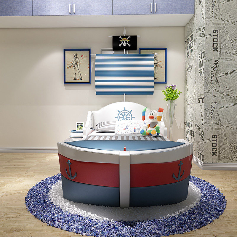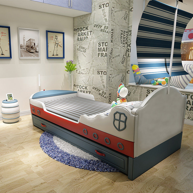 儿童床男童单人床青少年个性创意卧室家具卡通带造型男孩床海盗船