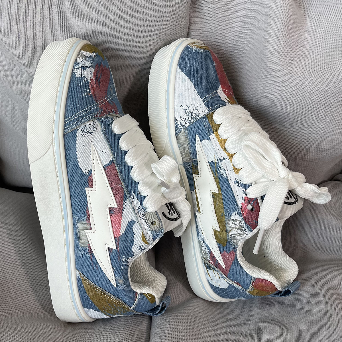 鞋子男ins新款小众设计闪电板鞋男女复古运动休闲鞋校园风情侣鞋