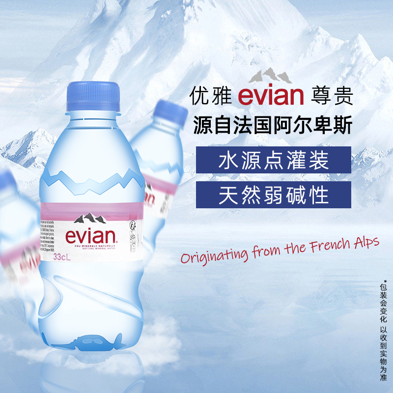 evian依云矿泉水330ml瓶装整箱法国原装进口天然饮用水多省包邮