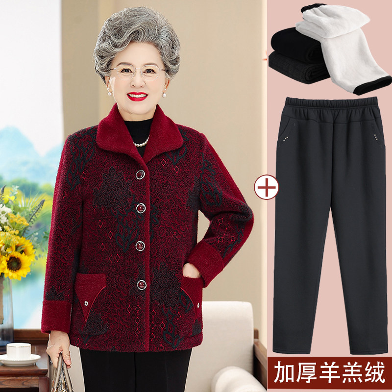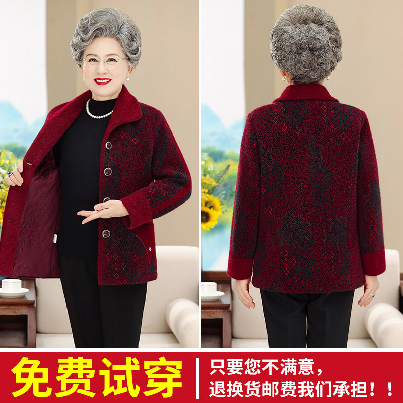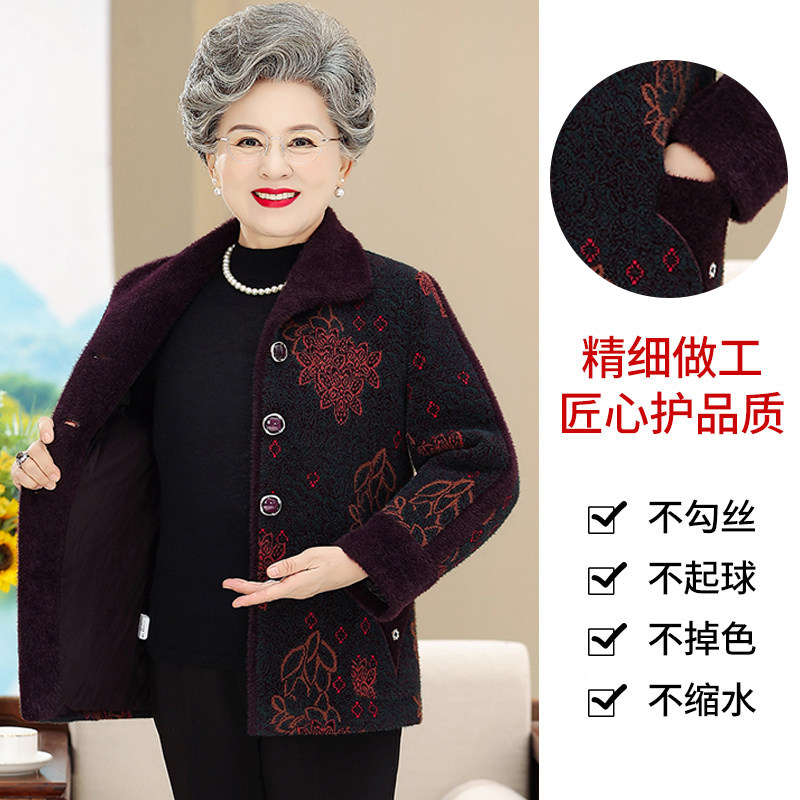 中老年人秋冬装女妈妈水貂绒洋气上衣70岁奶奶装加厚保暖老人外套
