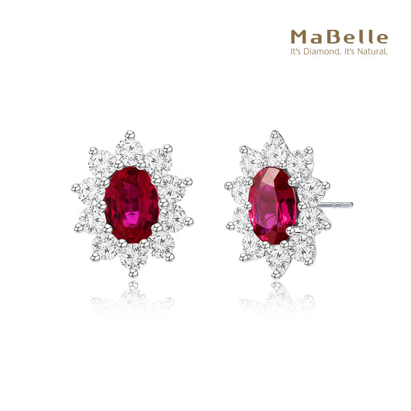 MaBelle/玛贝尔炽恋瑰宝系列 18K白王妃款鹅蛋型红宝石钻石耳钉