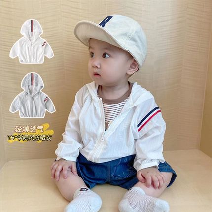 男女宝宝夏季透气薄款外套男童空调开衫衣服婴儿休闲连帽上衣夏装