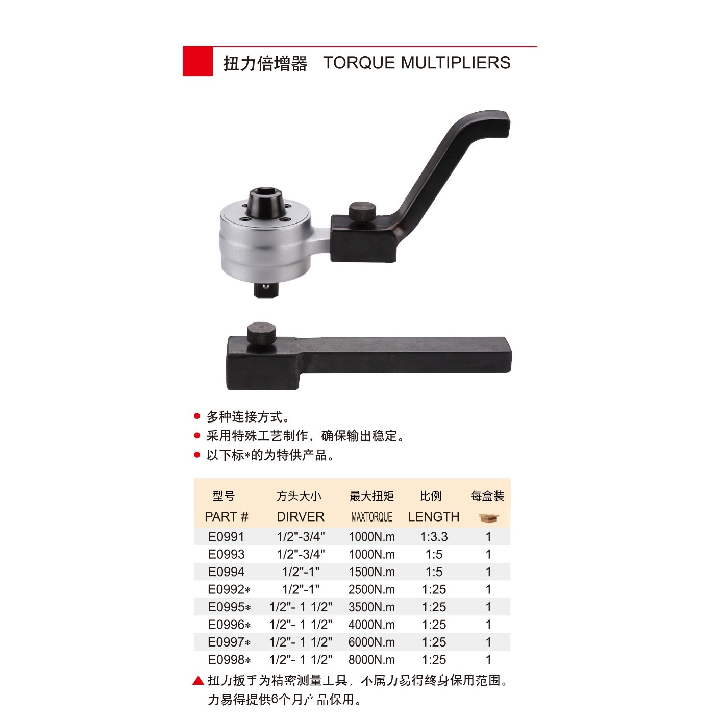 总 力易得扭力倍增器E0991E0993E0994E0992*E0995*E0996*