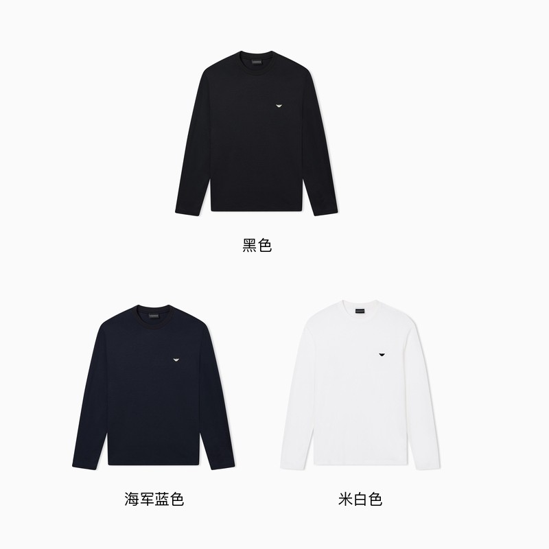 EMPORIO ARMANI/阿玛尼26年春季新款男士圆领长袖正肩刺绣T恤官方