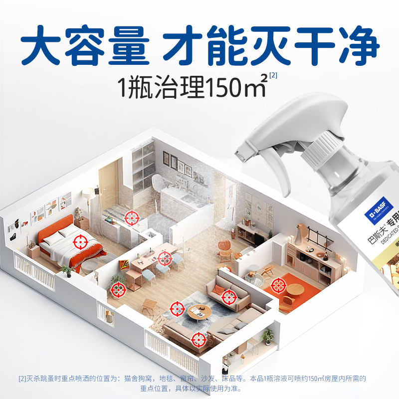 德国巴斯夫跳蚤药呋虫胺喷雾剂家用杀虫剂非无毒宠物床上灭驱除去