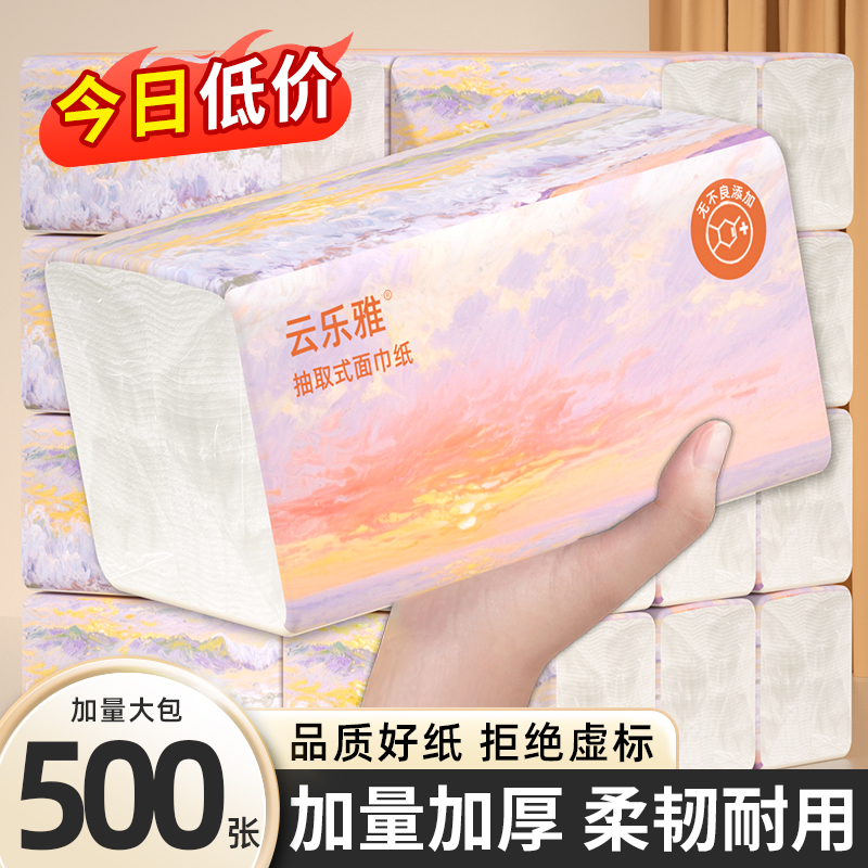 【50包升级加大装】500张抽纸整箱批发家用卫生纸巾实惠装擦手纸