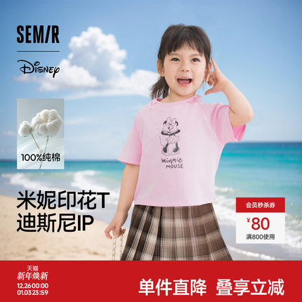 【迪士尼IP】森马儿童短袖T恤2025夏新款可爱印花上衣纯棉女童装