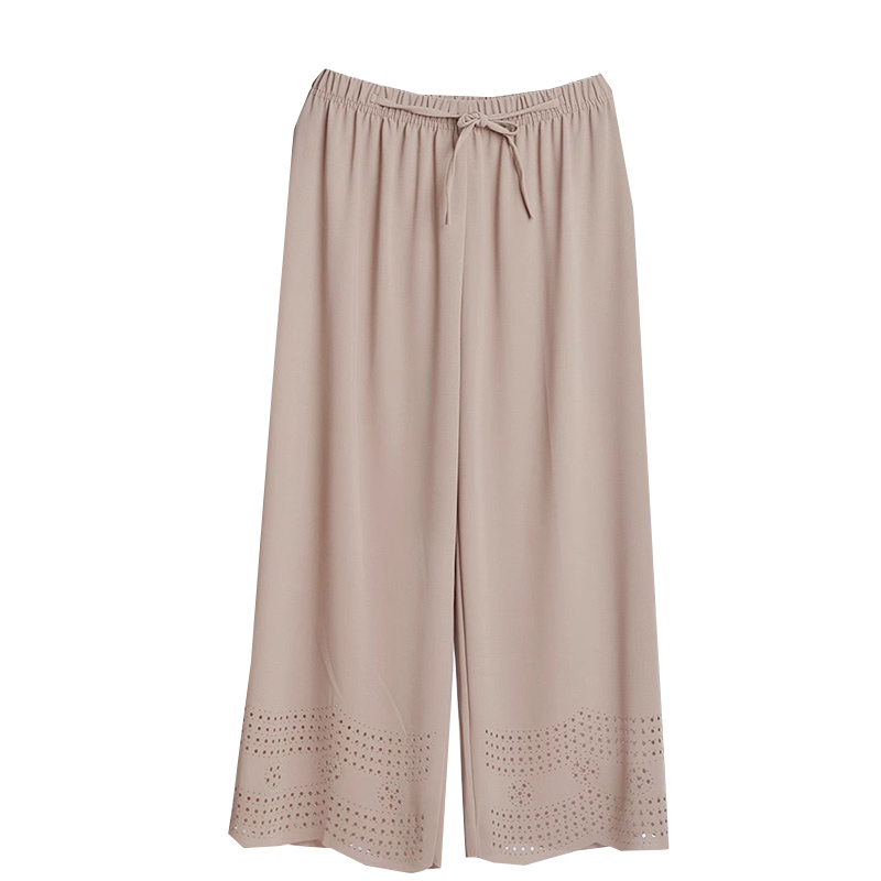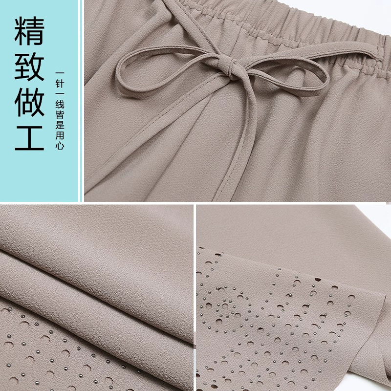 妈妈装夏季宽松中老年人凉爽九分裤薄款女新款直筒镂空阔腿裤冰丝