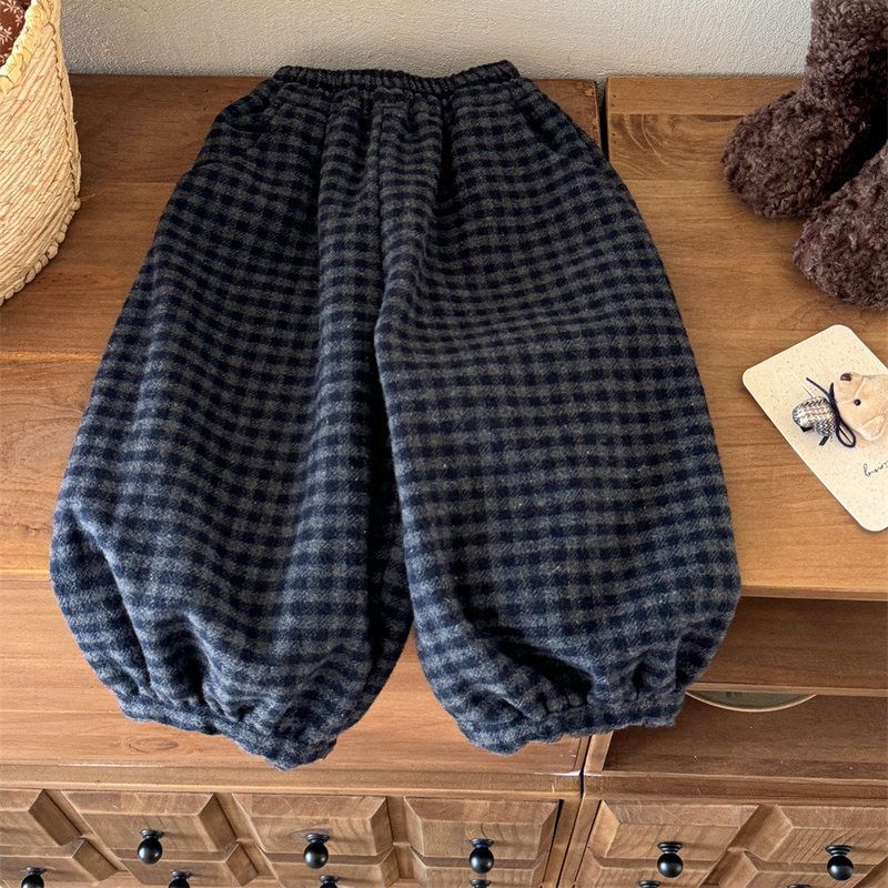 25秋冬款女童洋气森系加绒格子休闲裤儿童韩版时髦百搭保暖束脚裤