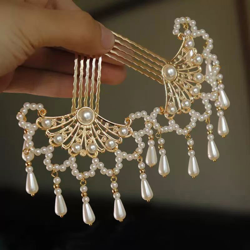 古风珍珠流苏发簪新中式旗袍盘发簪子发钗复古汉服后压掩鬓发饰品