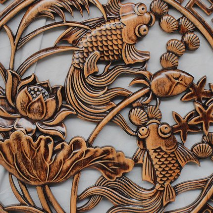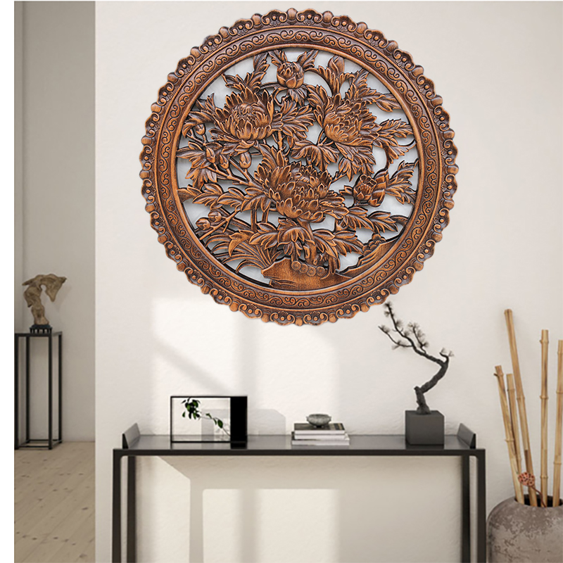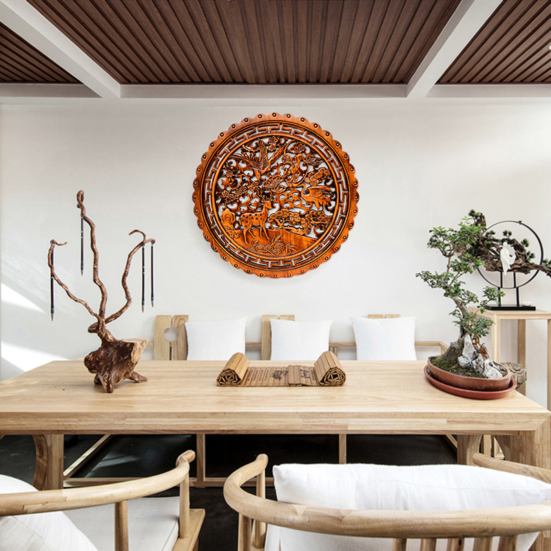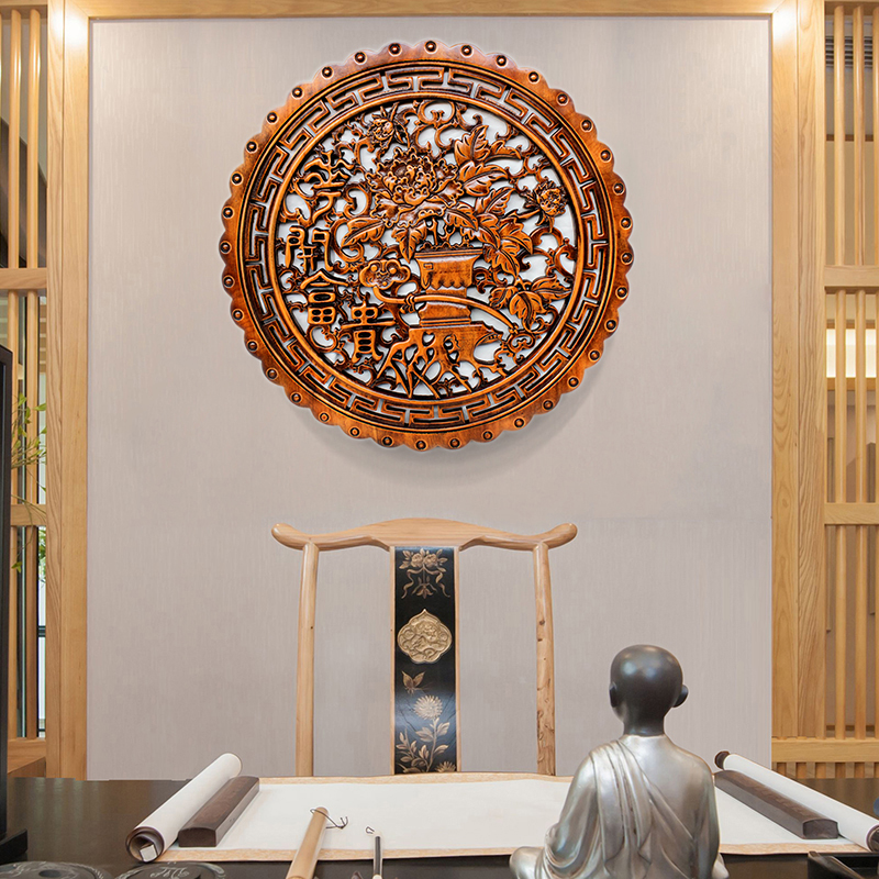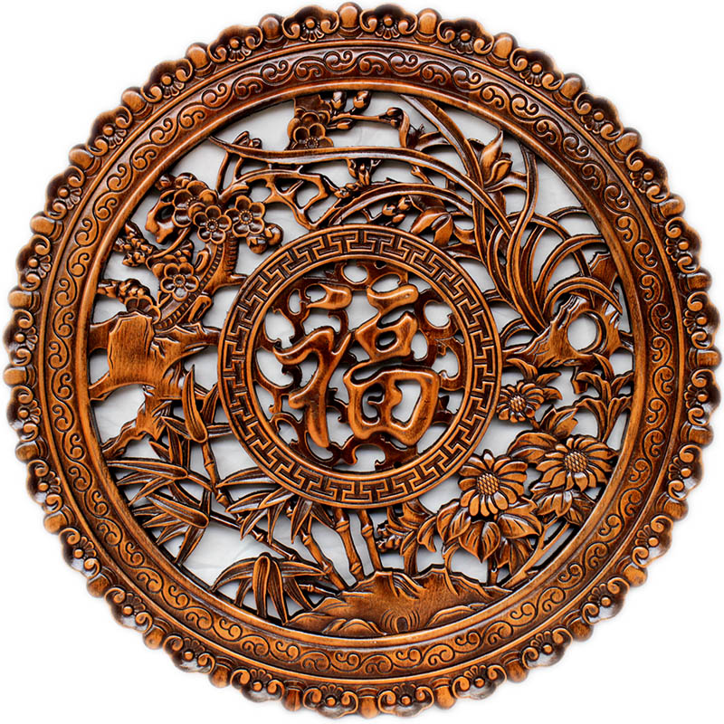 东阳木雕挂件卧室内装饰壁挂客厅玄关实木花格中式仿古圆形福字龙