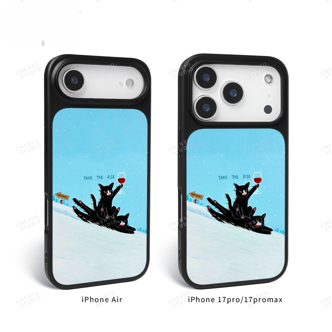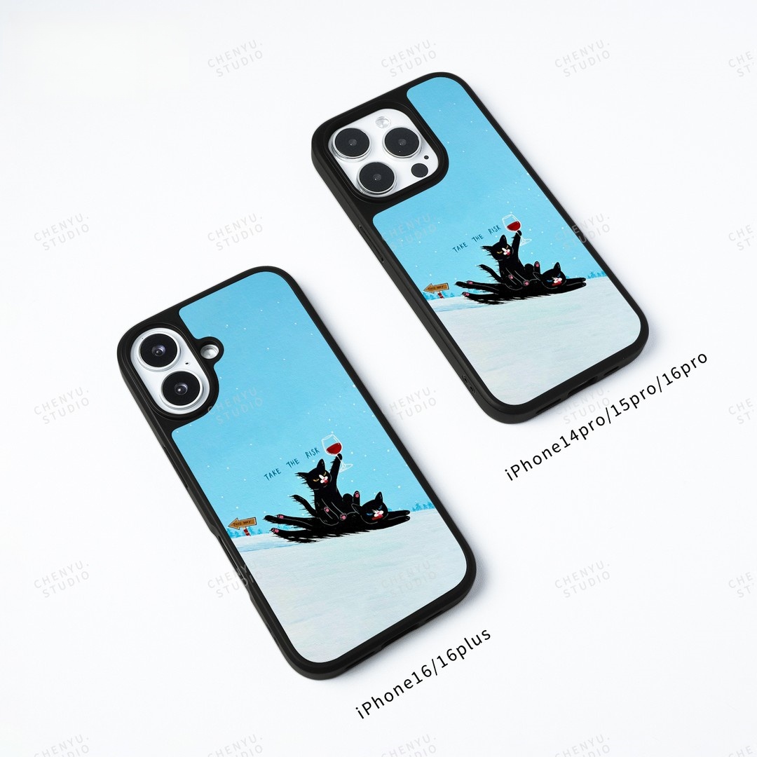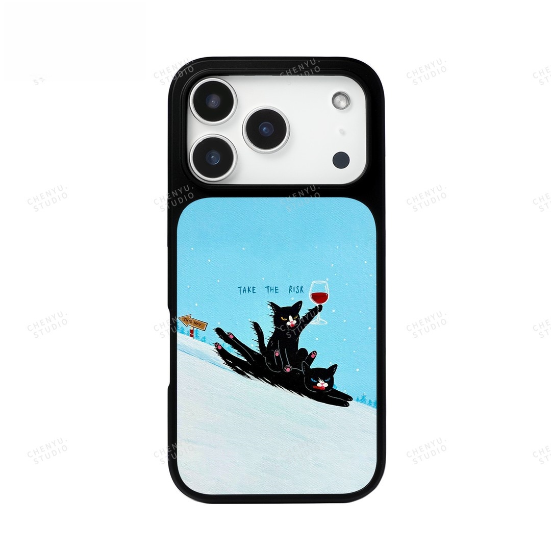 ins风可爱红酒黑猫黑边软壳磁吸适用苹果iPhone17promax手机壳1615pro小米1415Pro华为mate60p70三星S23防摔