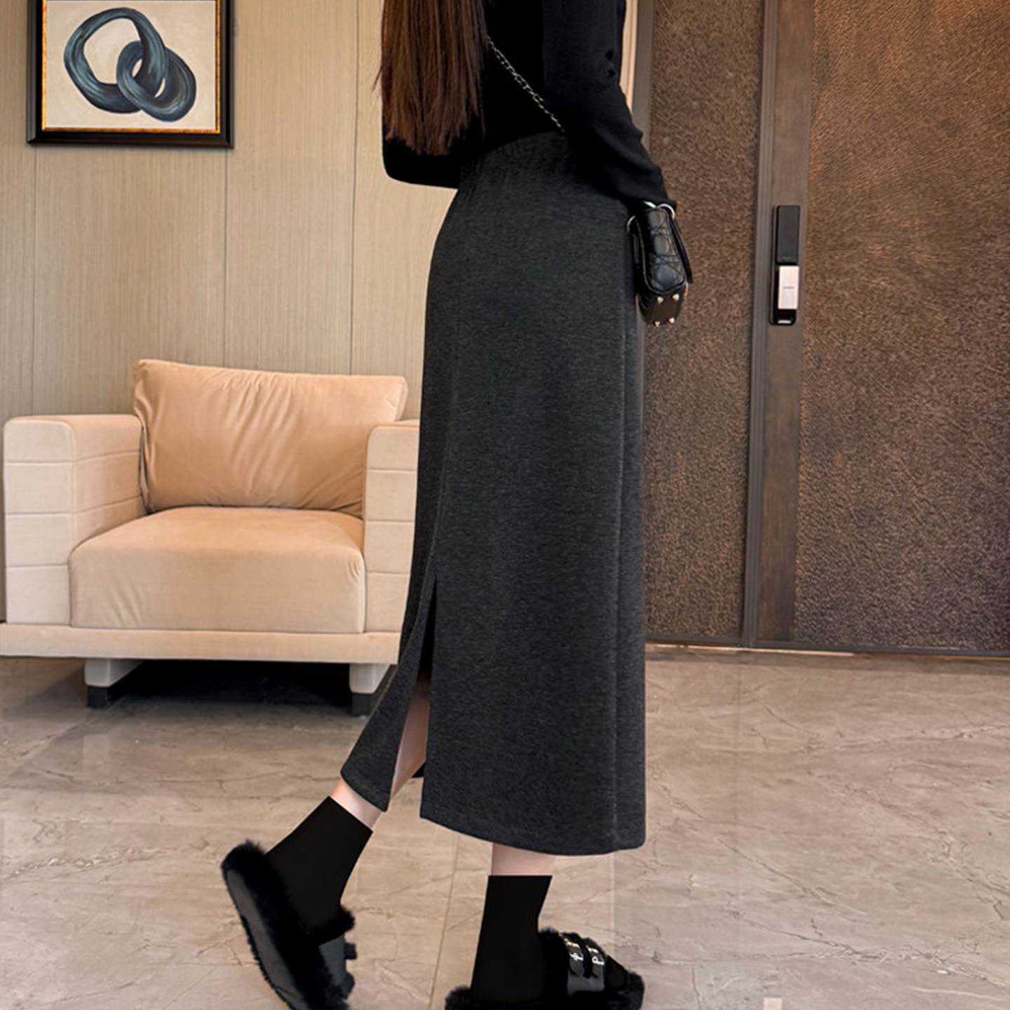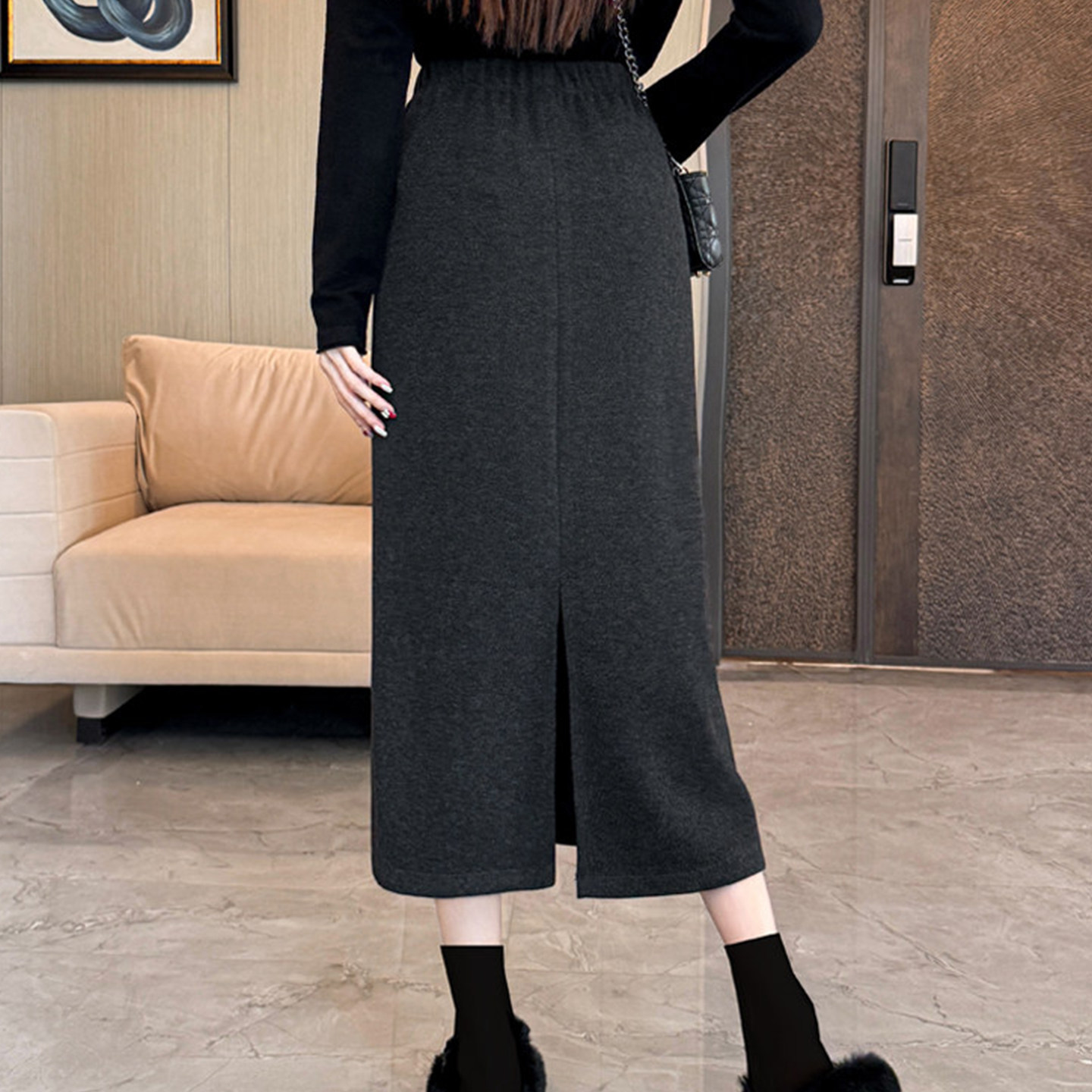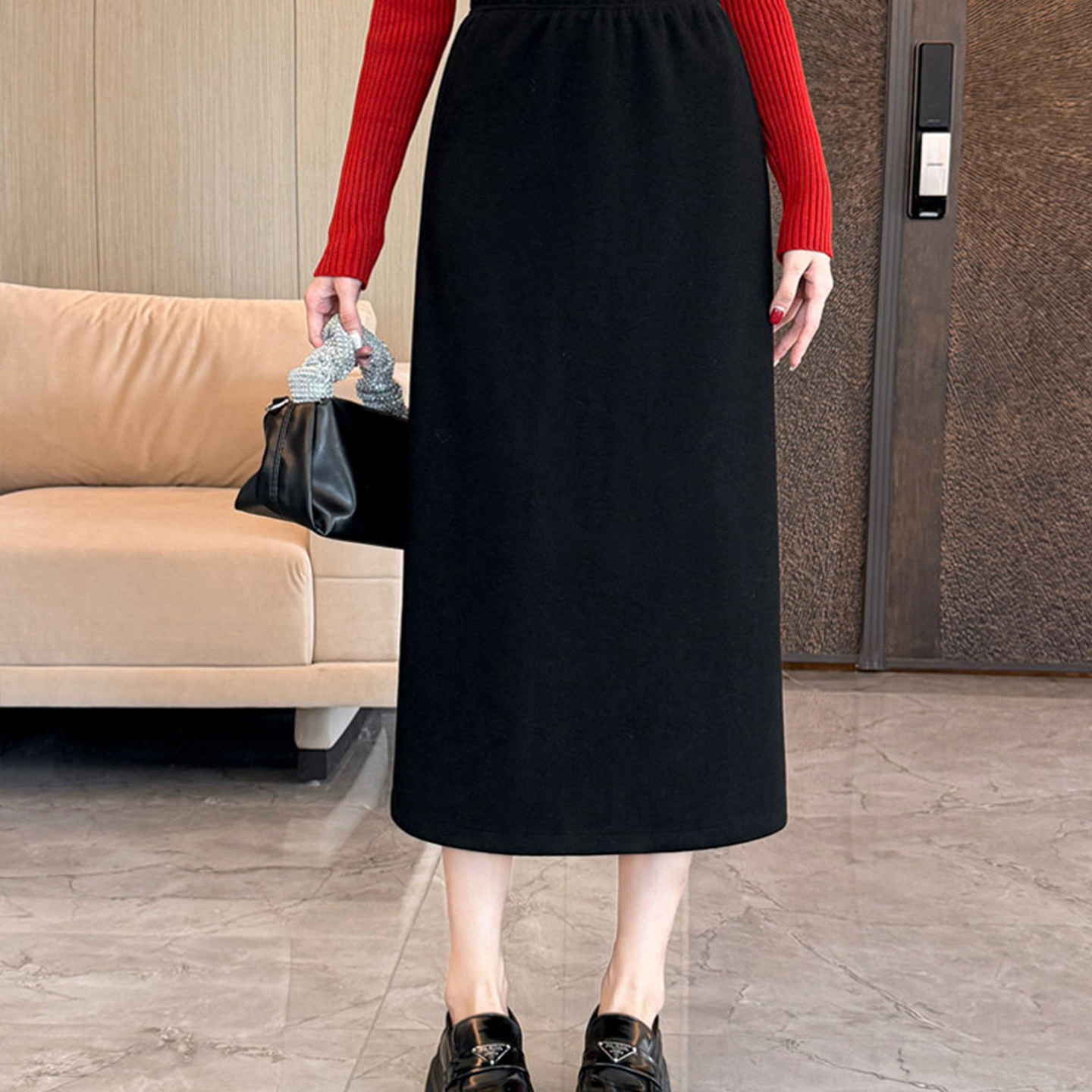 大码毛呢高腰直筒半身裙女秋冬季