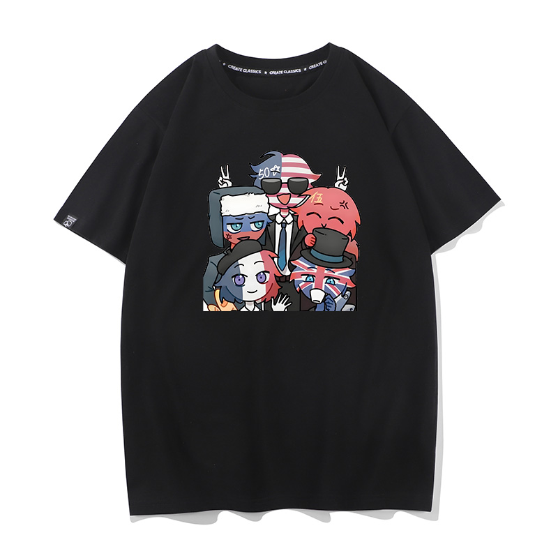 秀洛动漫夏季纯棉短袖T恤男女打底衫纯棉上衣服情侣装CH五常国拟