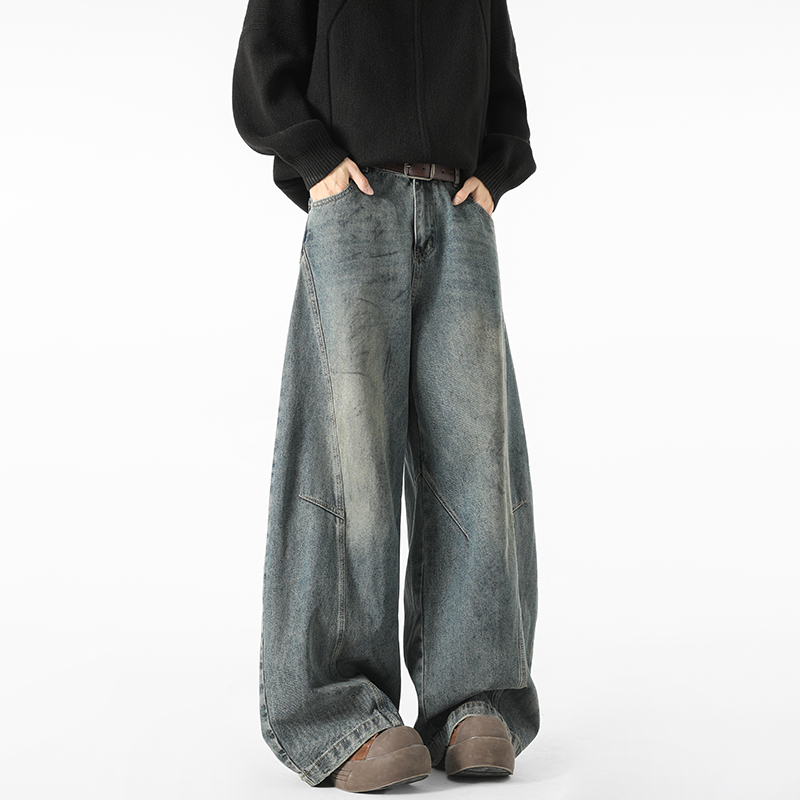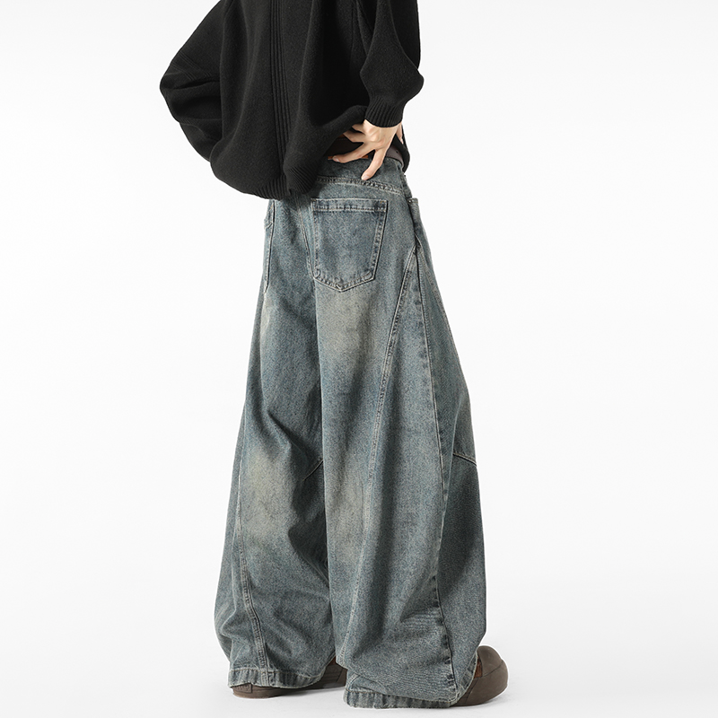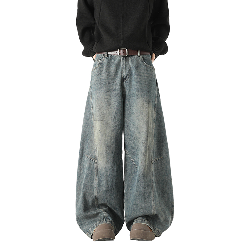 BOYUE帛跃美式复古解构水洗牛仔裤做旧显瘦嘻哈弯刀男直筒阔腿裤