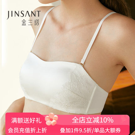 法式蕾丝无肩带抹胸金三塔聚拢