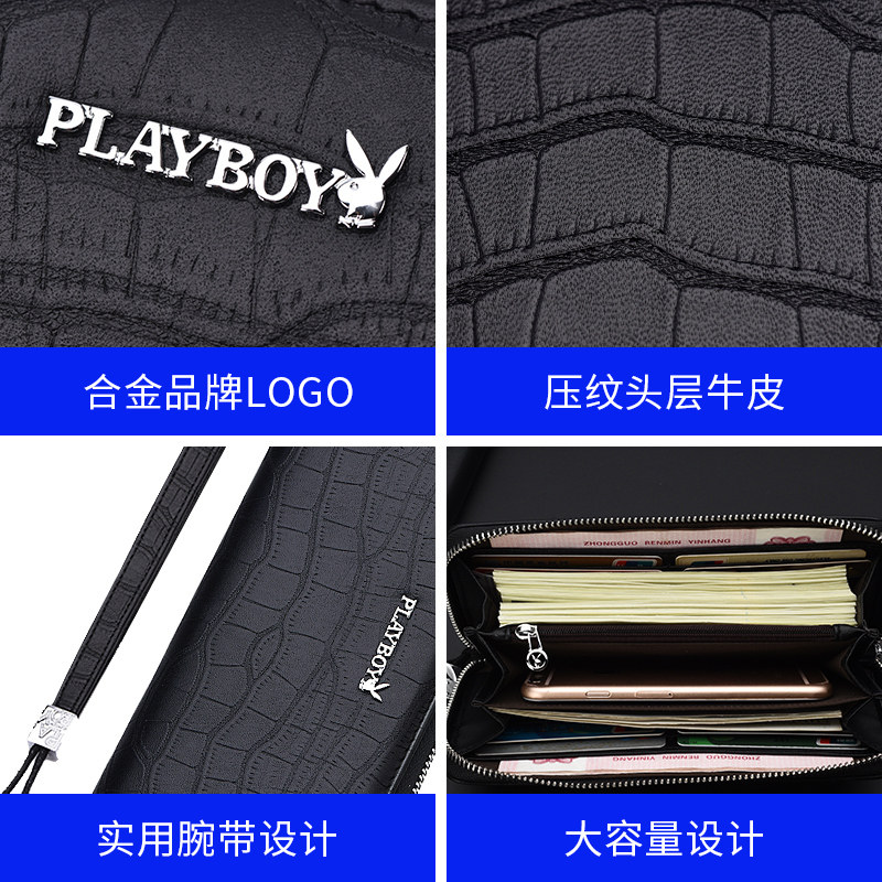 花花公子男士钱包长款手拿包新款真皮拉链钱夹手抓包送男友老公潮