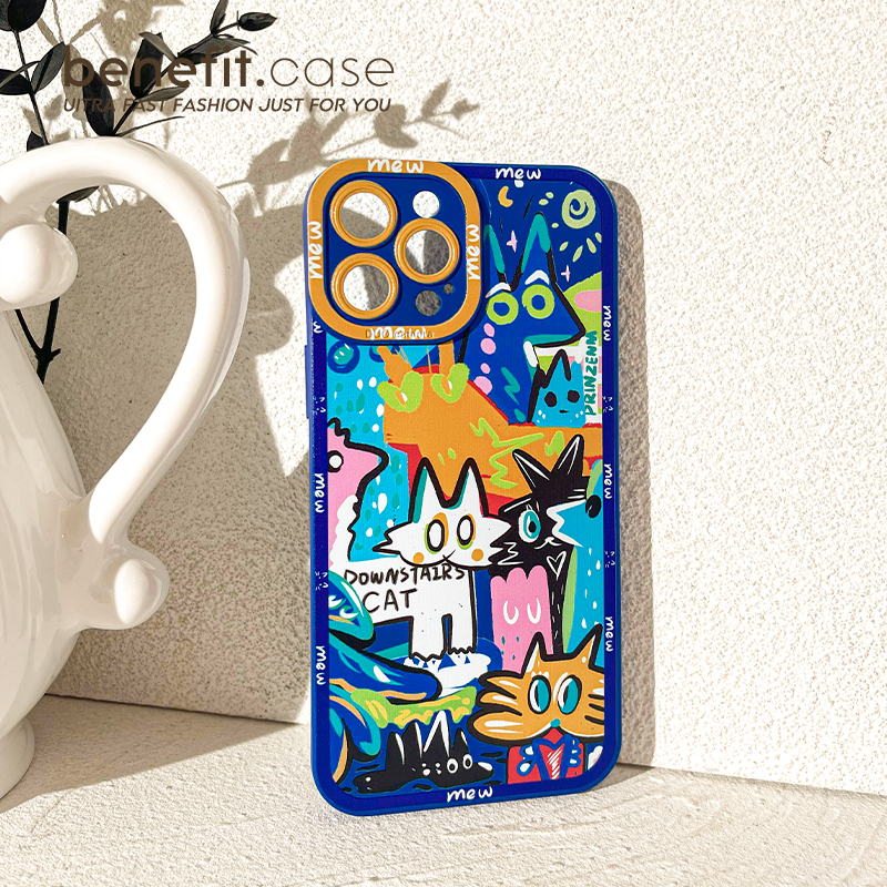 benefit艺术彩色猫咪17pro16适用iphone15promax苹果13手机壳14promax新款12套11小众xsmax全包xr硅胶8plus防