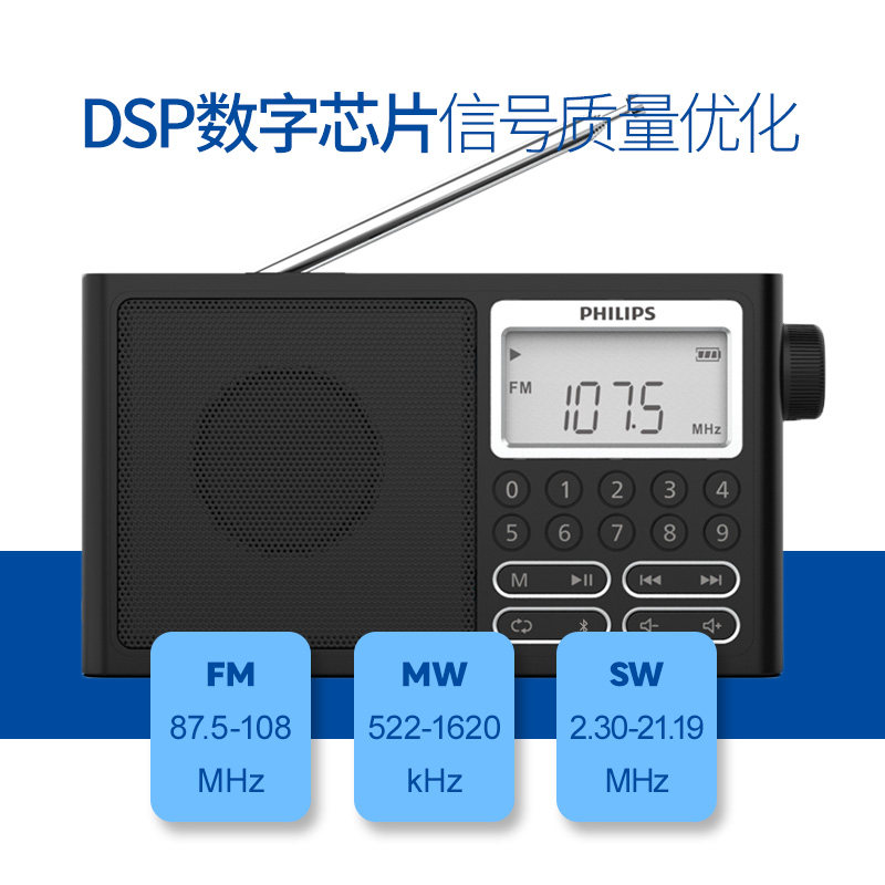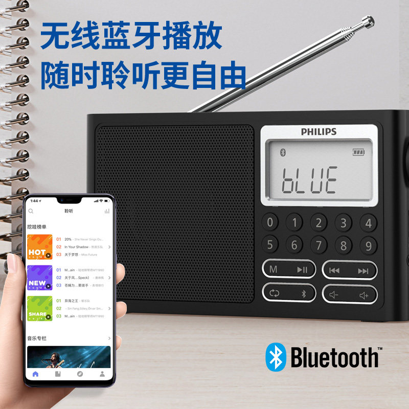 飞利浦TAR3878便携式FM全波段收音机插卡蓝牙音响四六级考试英语