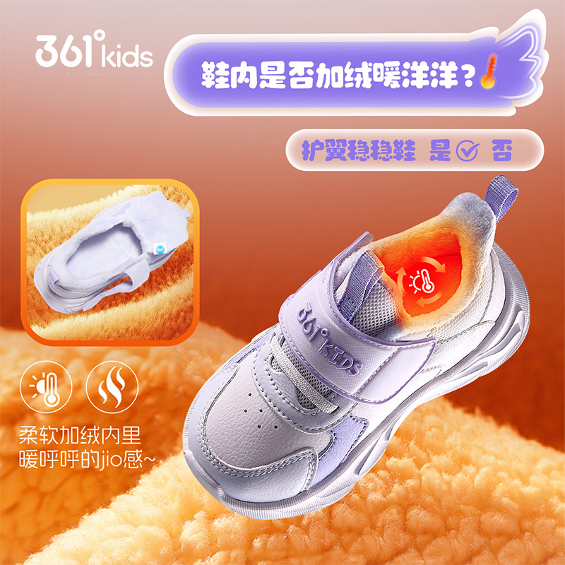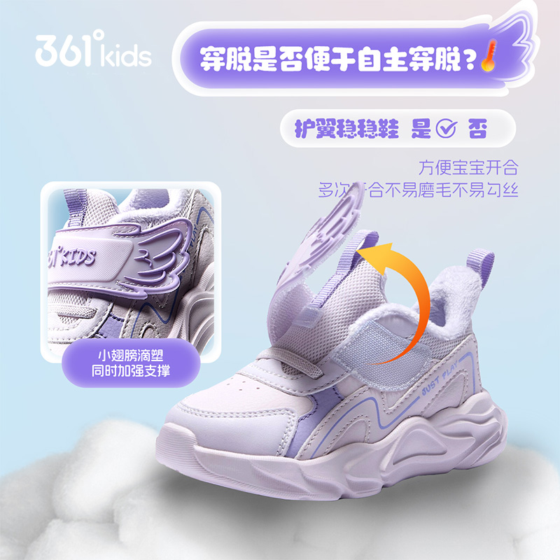 361°童鞋男女童保暖儿童棉鞋2025年冬季新款魔术贴幼童学步鞋子