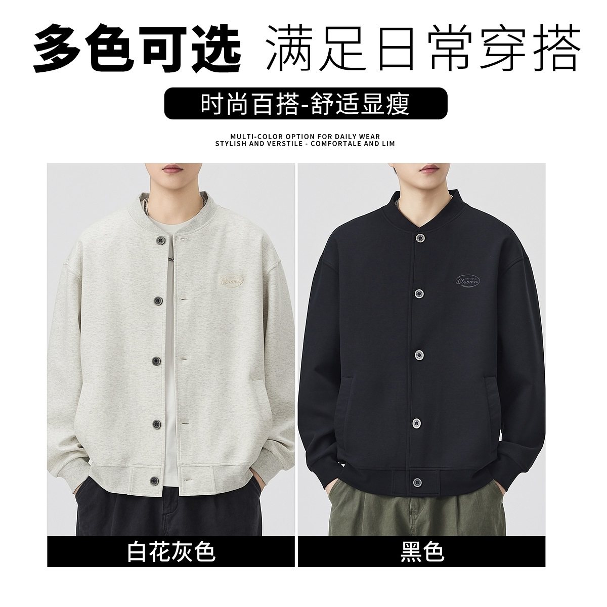 美式棒球服外套男士秋冬新款潮牌开衫卫衣立领夹克上衣宽松休闲服
