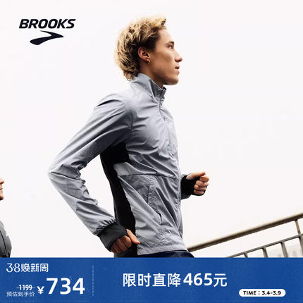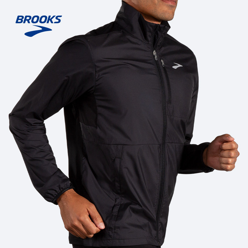 BROOKS布鲁克斯男士跑步防风户外夹克防水薄款运动外套收纳拉链