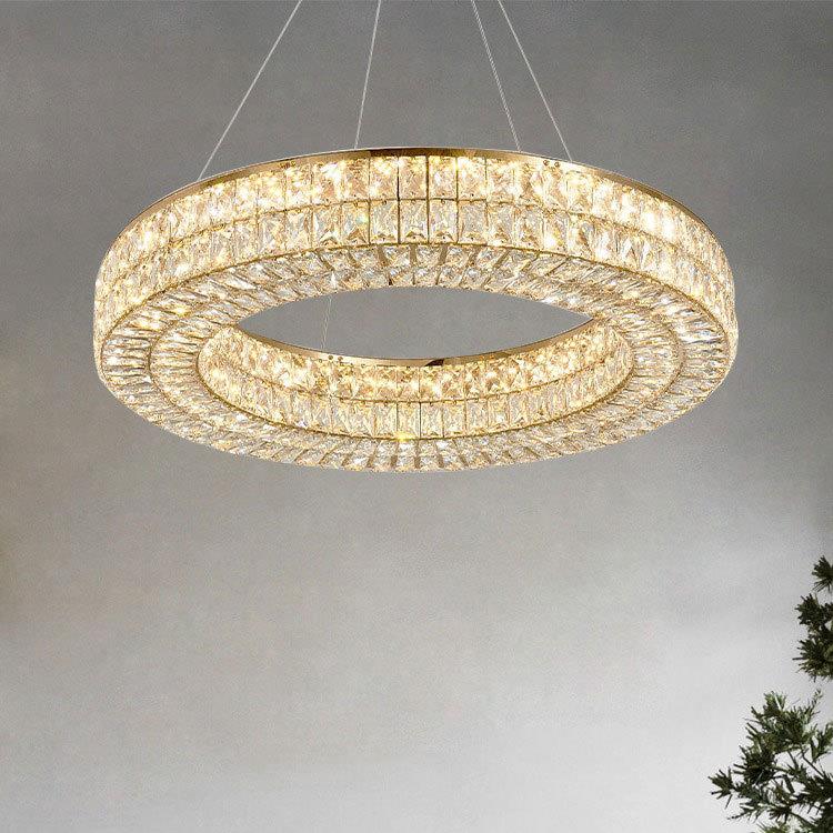 轻奢客厅吊灯不锈钢圆形吊线水晶餐厅灯主卧室后现代简约中山灯具