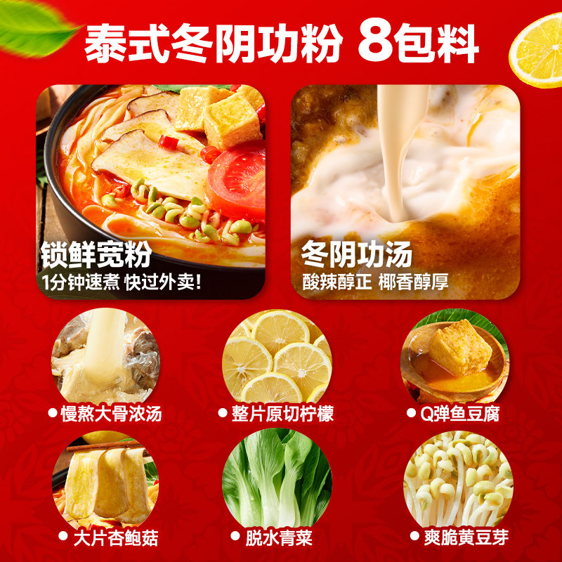 人类快乐新品泰式冬阴功米粉宽粉海鲜汤料椰香汤料懒人速食麻辣烫