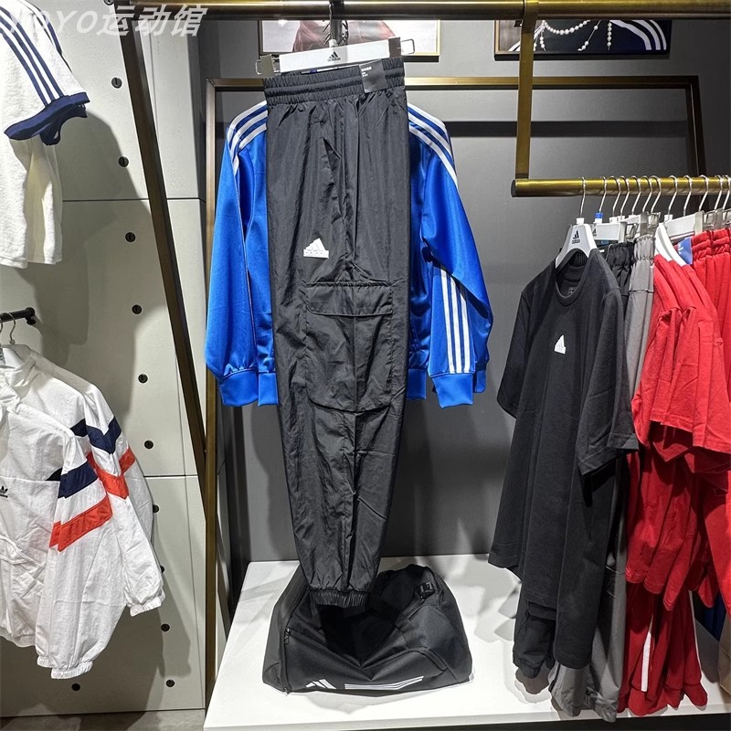 阿迪达斯长裤男正品春季梭织运动裤透气休闲工装裤束脚裤IN3702