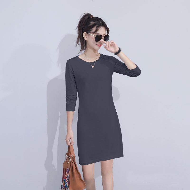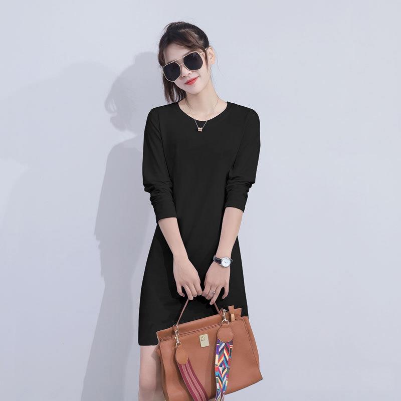 2025秋冬新款韩版ins超火纯棉中长款长袖T恤女春秋冬纯色内搭打底
