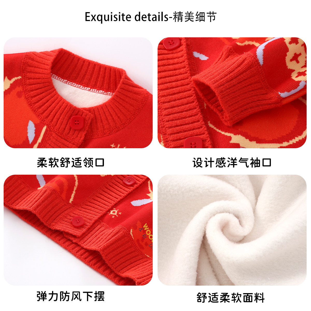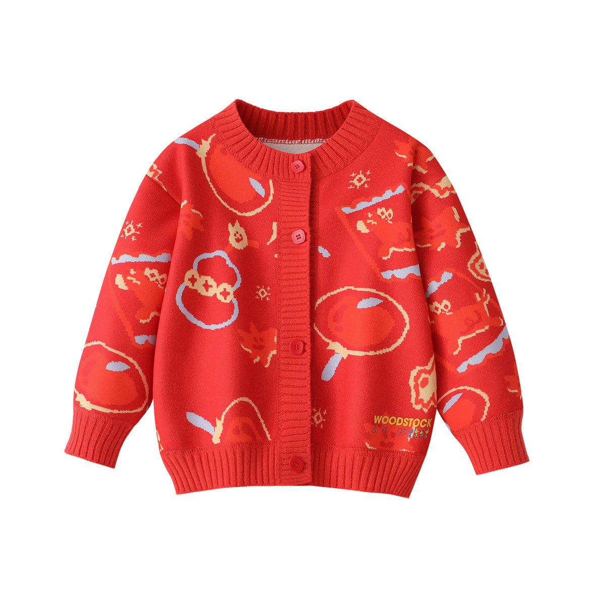史努比儿童红色马年拜年服2026新款男童加绒针织开衫女童冬装毛衣