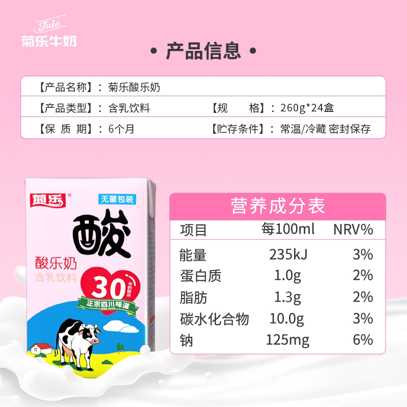 四川成都特产 菊乐酸乐奶含乳饮料儿童早餐奶整箱260g*24盒酸牛奶