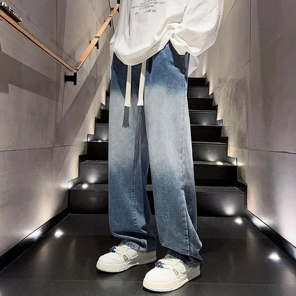 春秋新款宽松直筒阔腿长裤子美式高街vibe渐变水洗潮流牛仔裤男