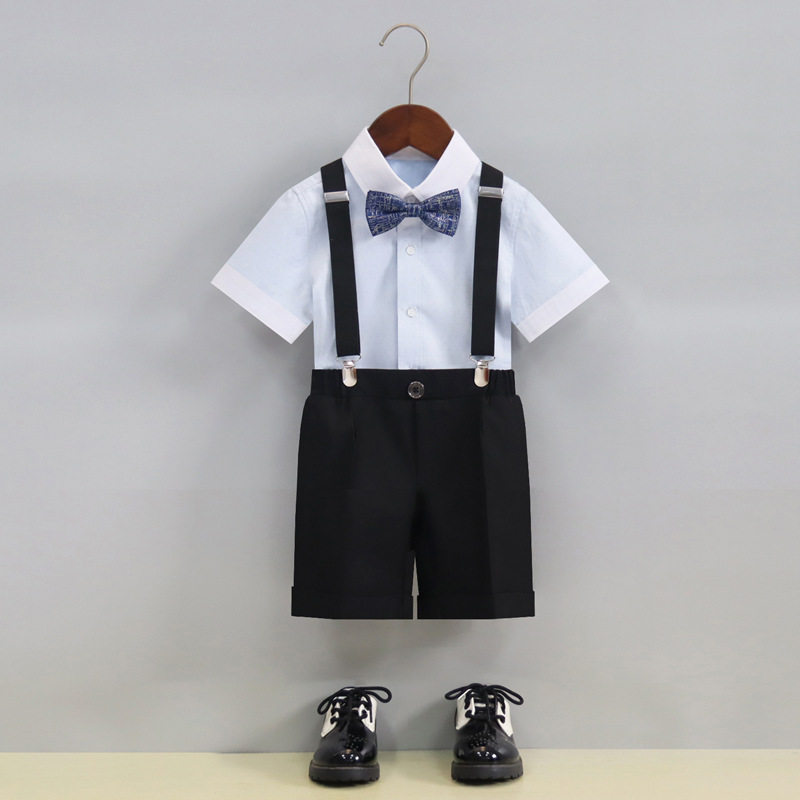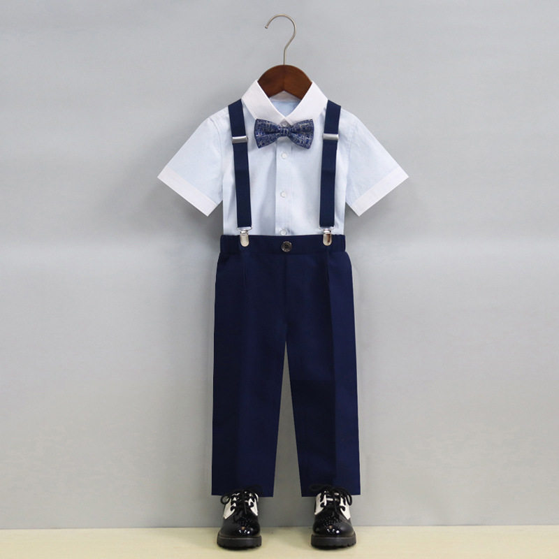 儿童西装套装夏秋男童英伦风小西服花童礼服男孩宝宝演出服背带裤