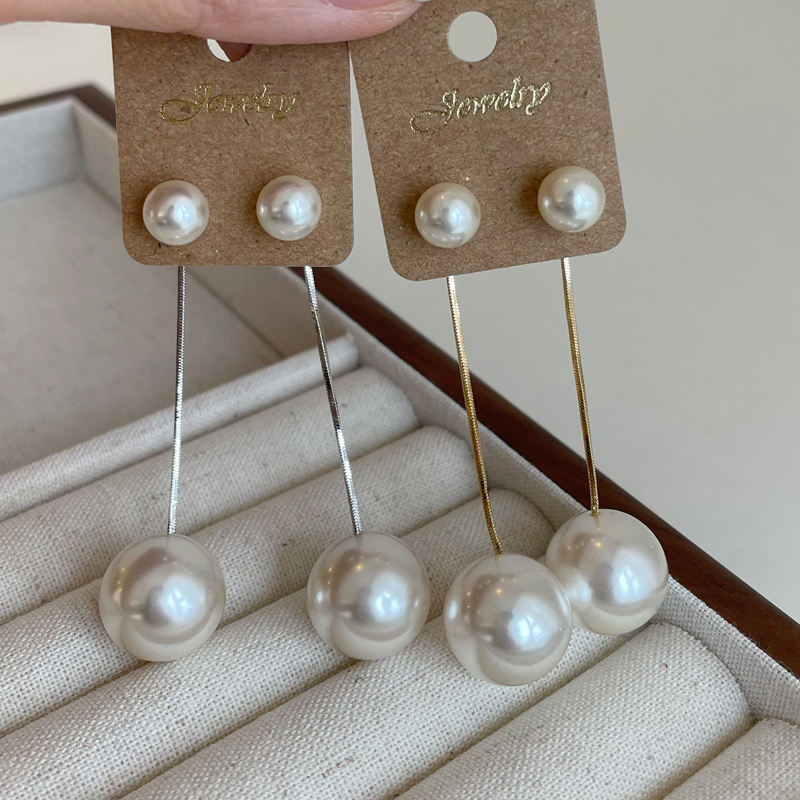 韩国气质人造珍珠女耳环长款耳钉珍珠耳饰长款高级感女法式耳环
