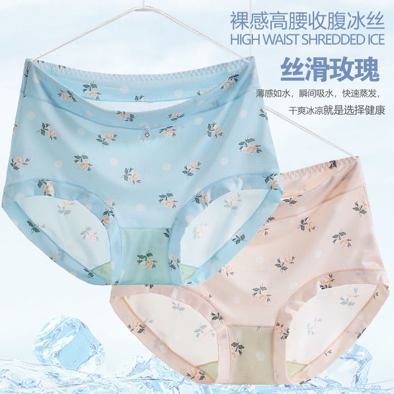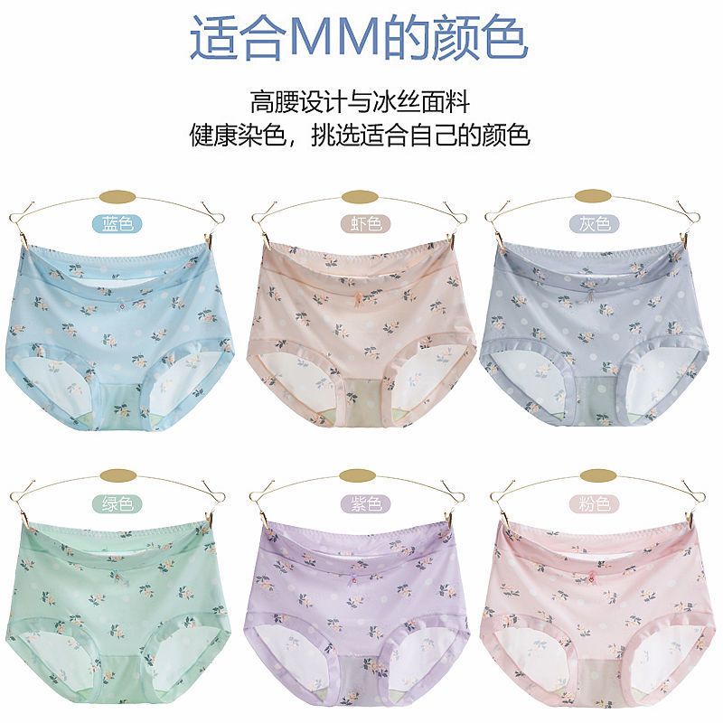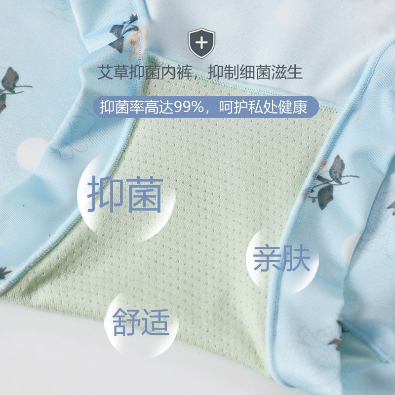3条艾草抗菌冰丝无痕高腰内裤女大码超薄速干透气印花女士三角裤