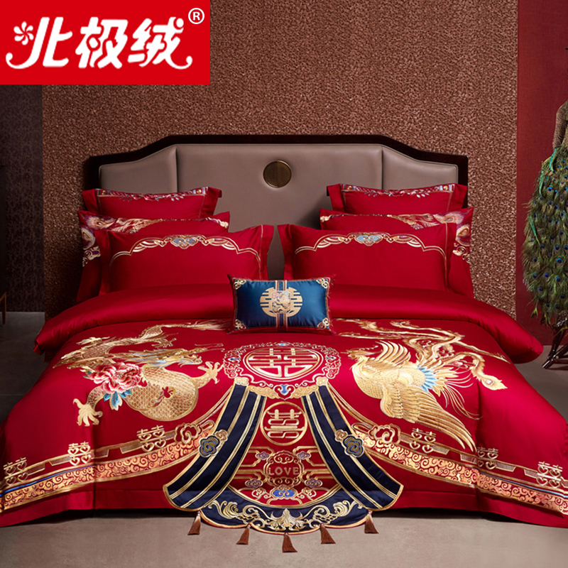 全棉婚庆四件套大红|千人加购