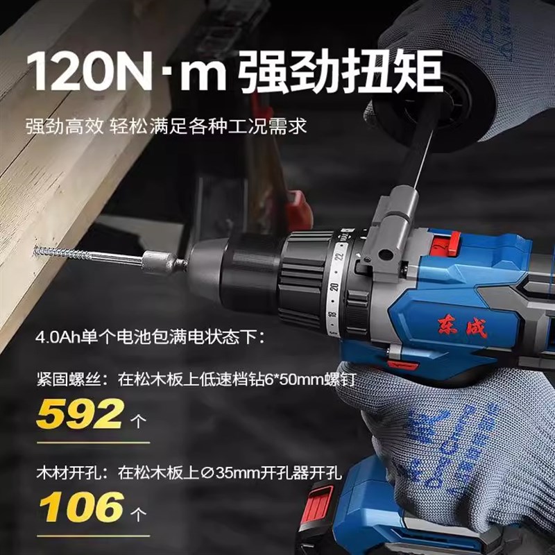 东成20V无刷锂电冲击钻充电式手电钻家用电动螺丝刀东城手钻工具