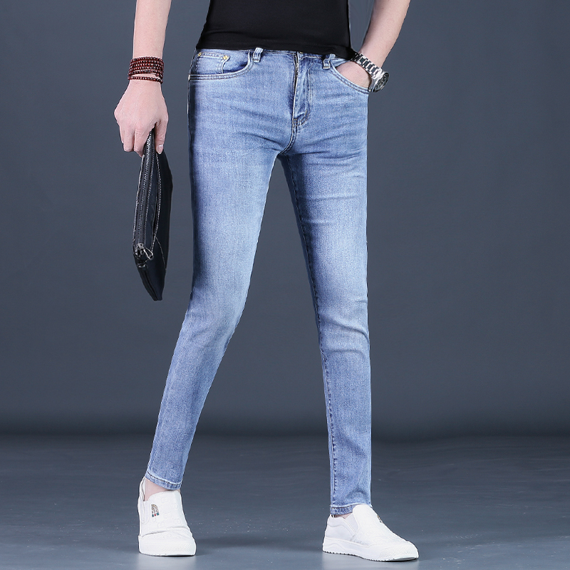 浅蓝色牛仔裤男款潮流修身小脚25
