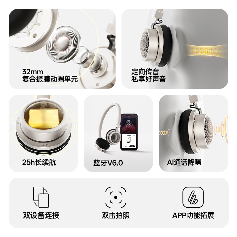 漫步者Doo Ace复古蓝牙耳机头戴式无线降噪运动时尚花再2025新款