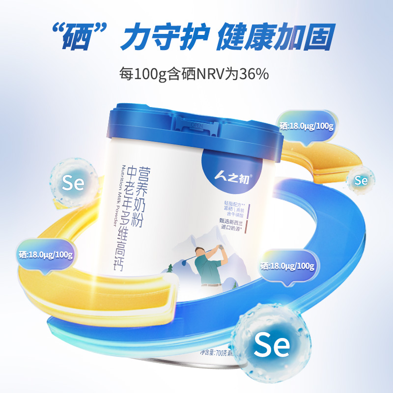 人之初多维高钙中老年奶粉700g富硒高铁膳食纤维成人营养牛奶粉
