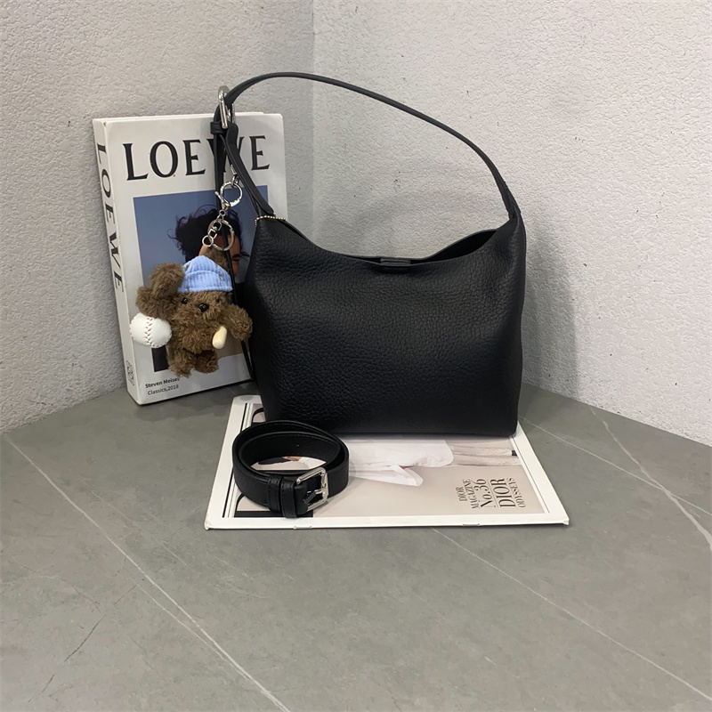 2025新款韩版时尚荔枝纹软皮水桶包休闲百搭腋下单肩包简约斜跨包