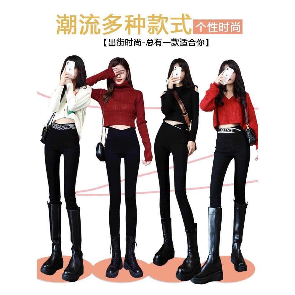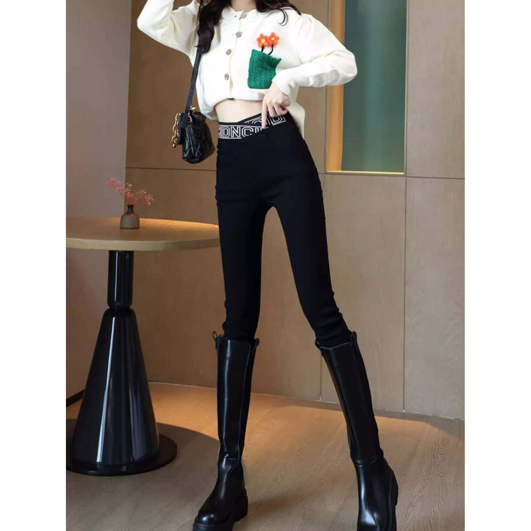 黑色打底裤女秋冬外穿2025新款加绒高腰显瘦小个子紧身铅笔小脚裤