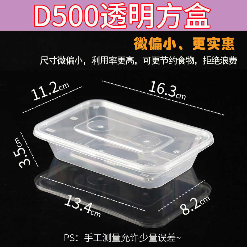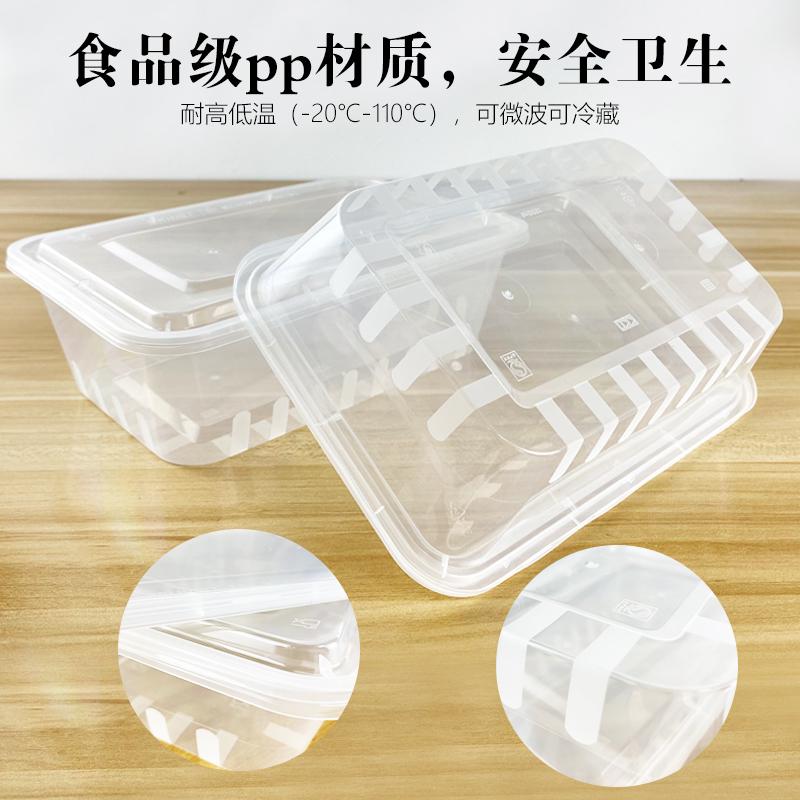 长方形餐盒商用750打包盒一次性塑料透明500ml快餐饭盒外卖盒带道
