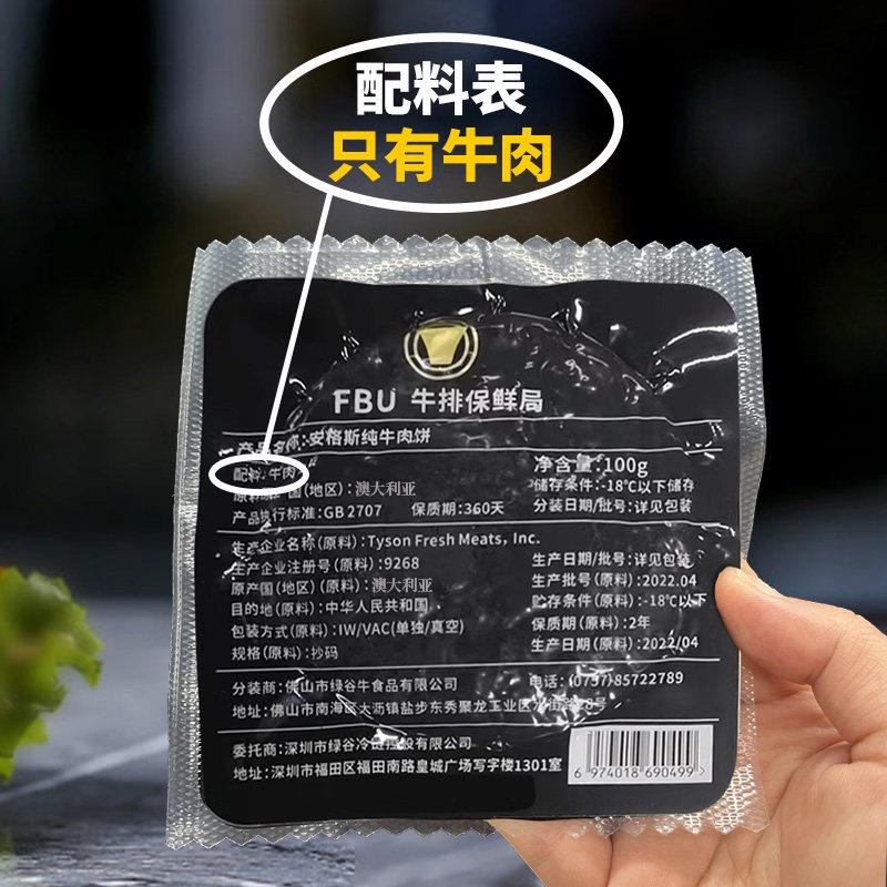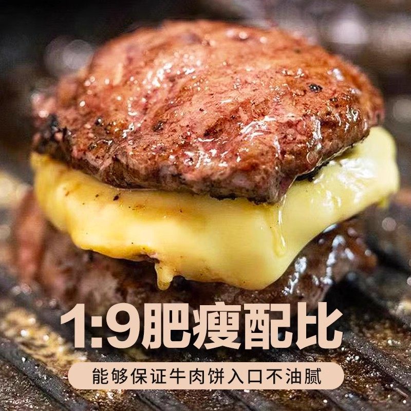 FBU牛排保鲜局原切安格斯纯牛肉饼0添加儿童早餐汉堡100g*10片