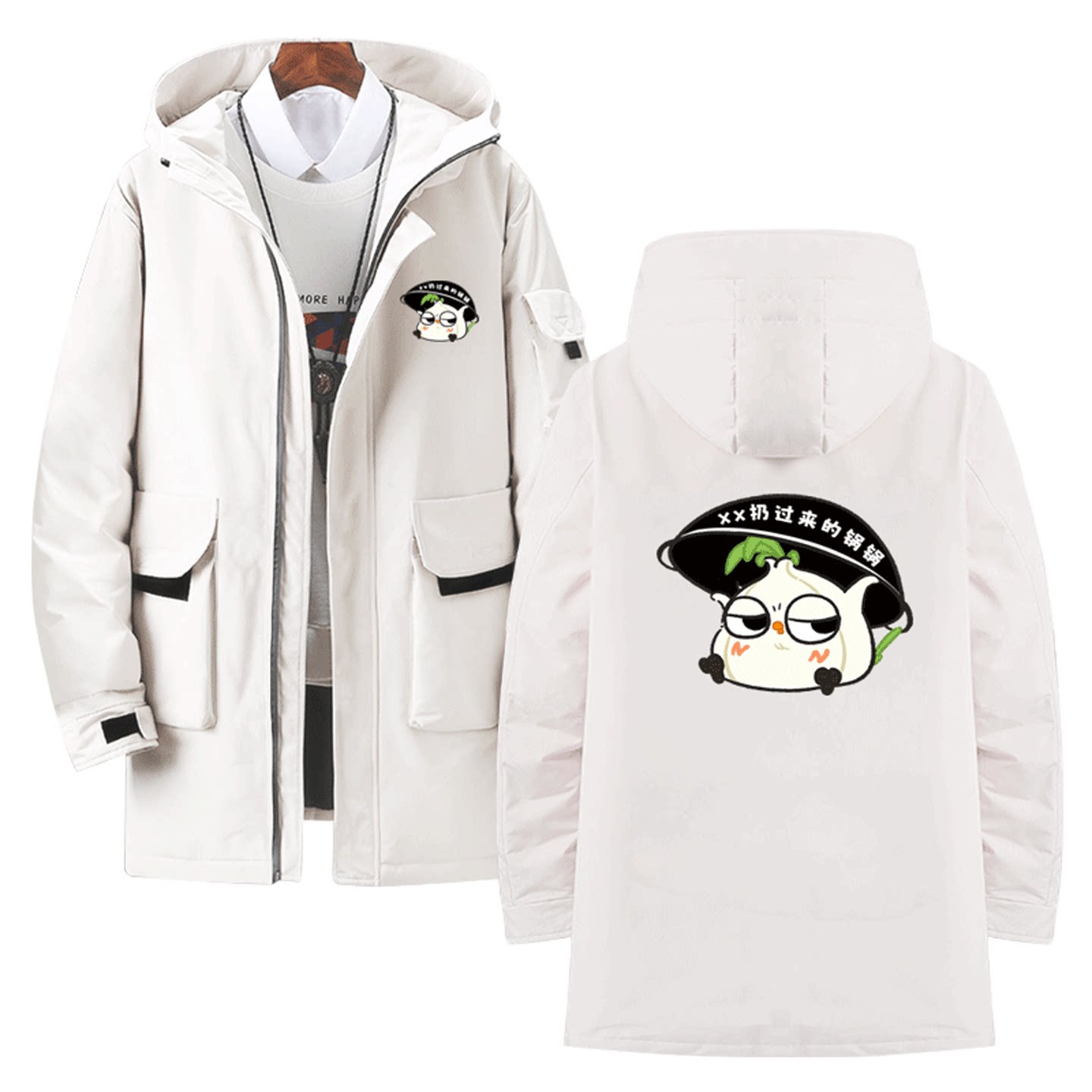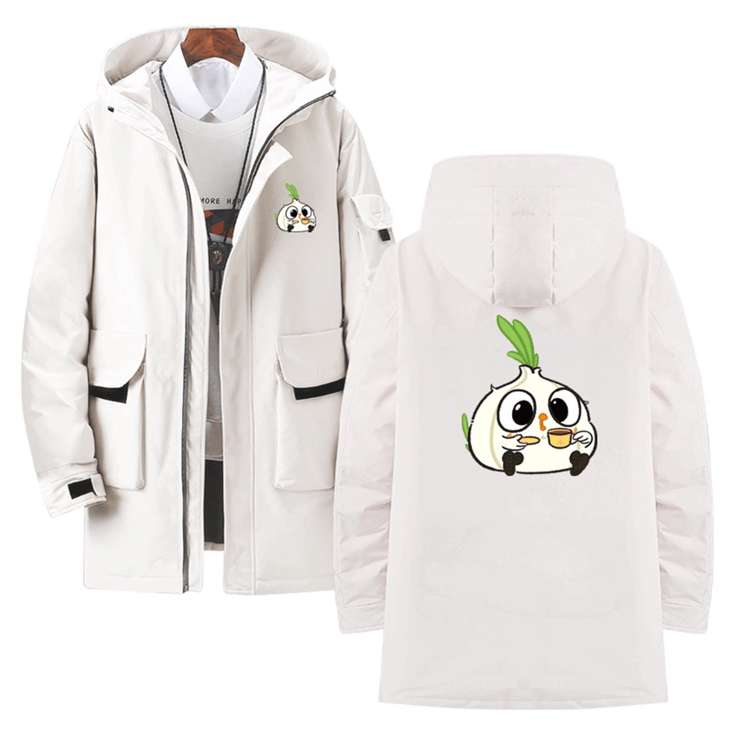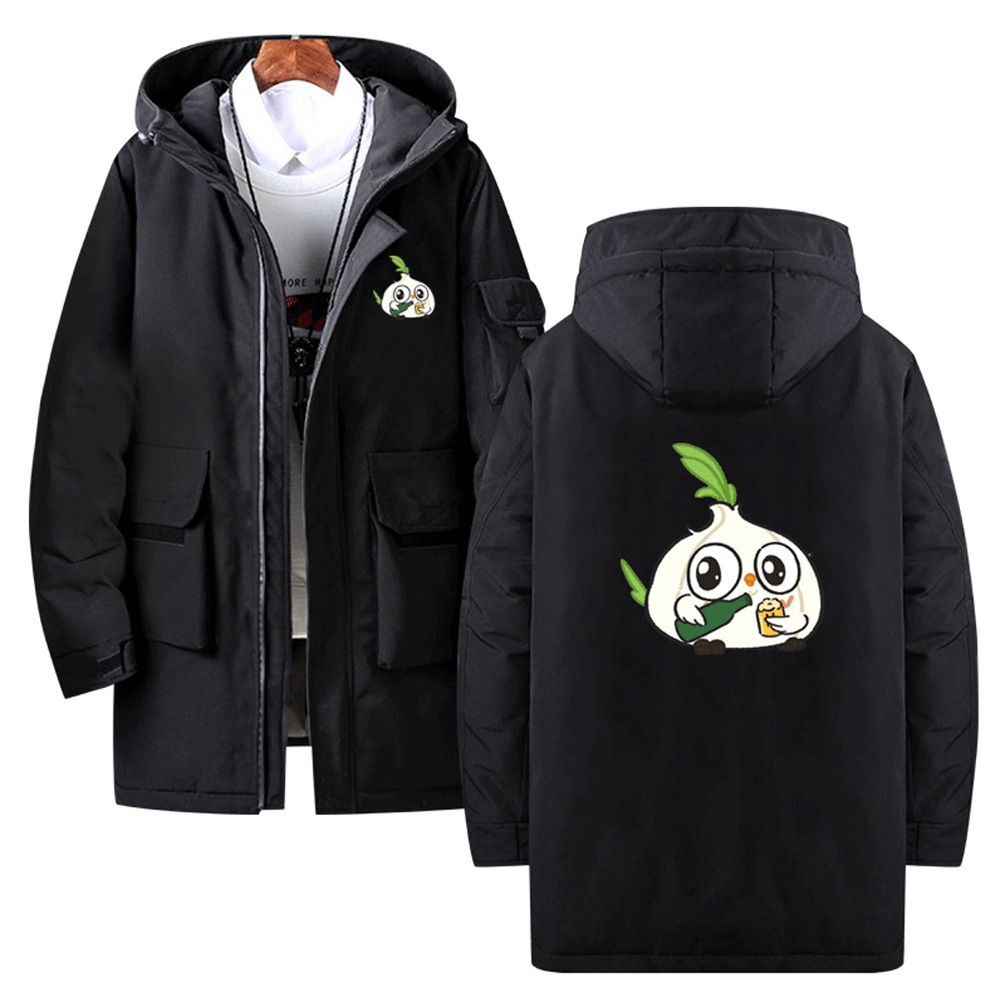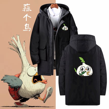 蒜鸟可爱趣味卡通印花周边男女情侣款可定制保暖外套中长款羽绒服