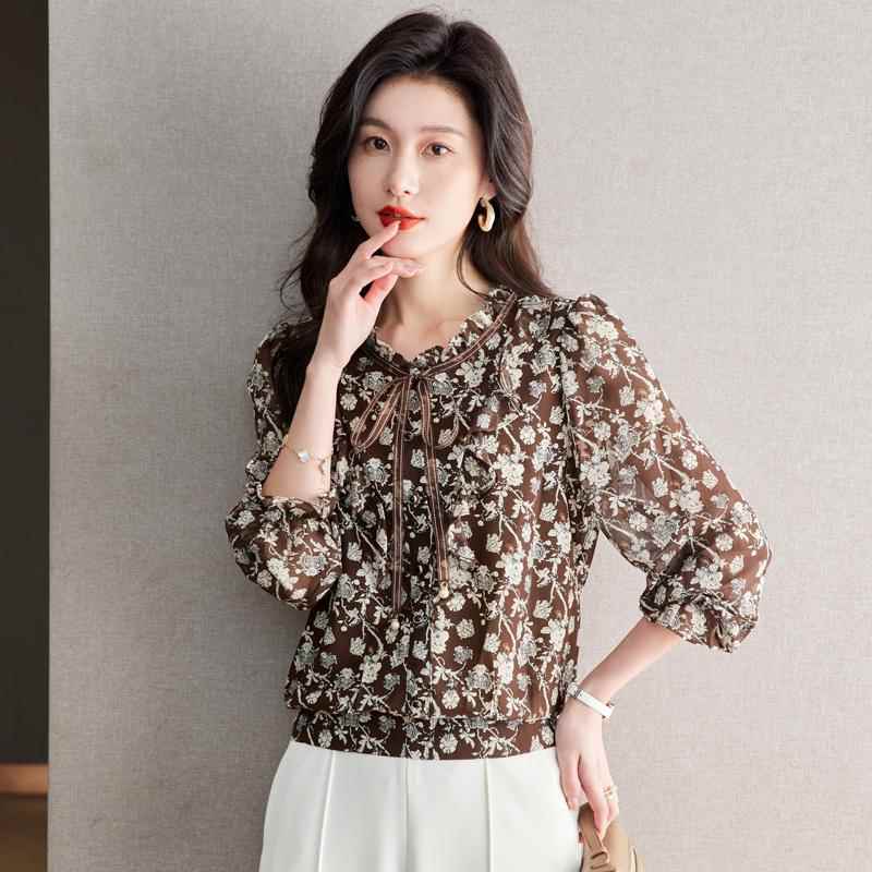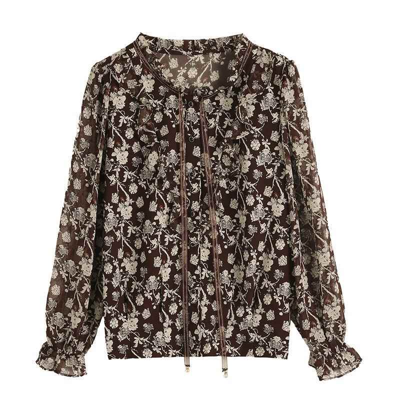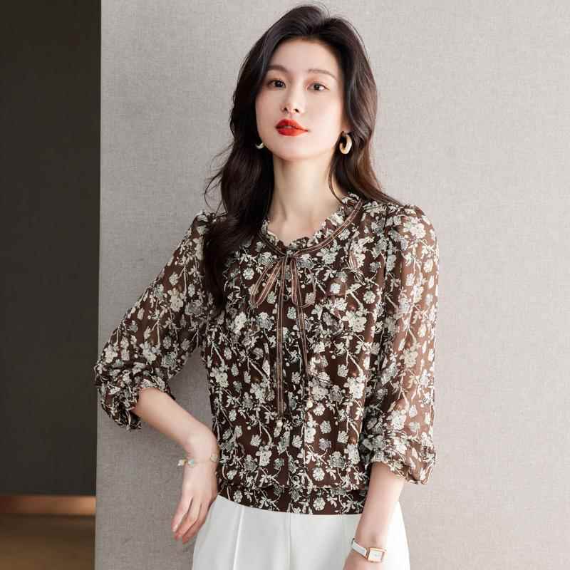 杭州真丝衬衫上衣女春装2025新款爆款国际大牌桑蚕丝碎花立领小衫