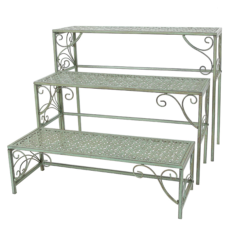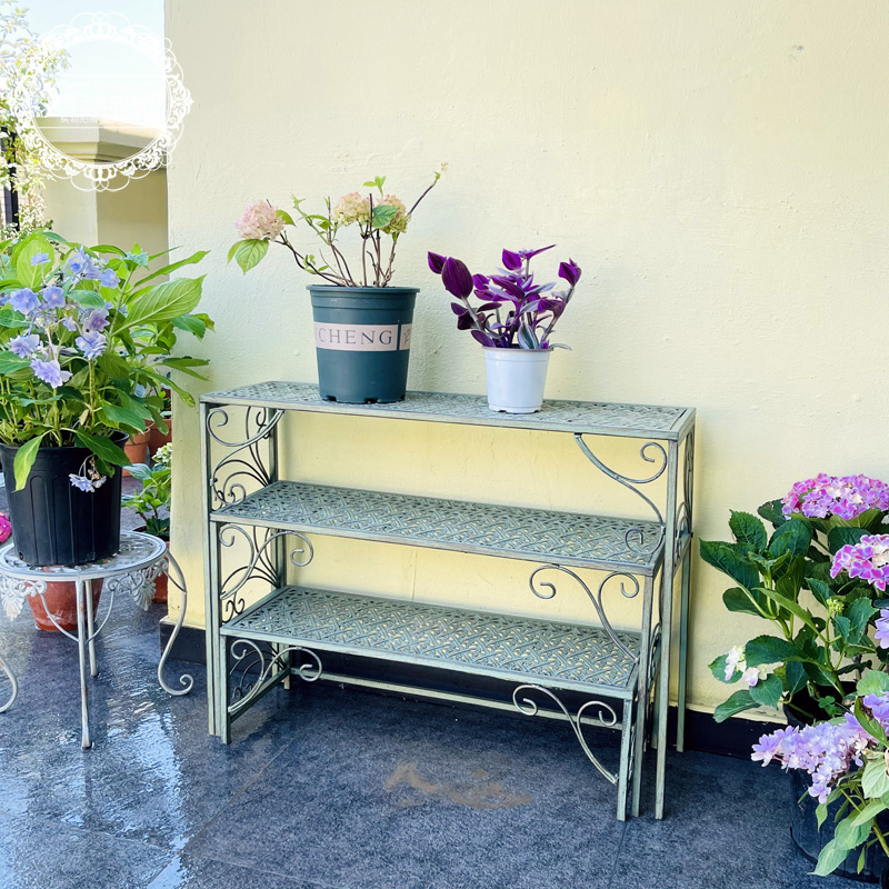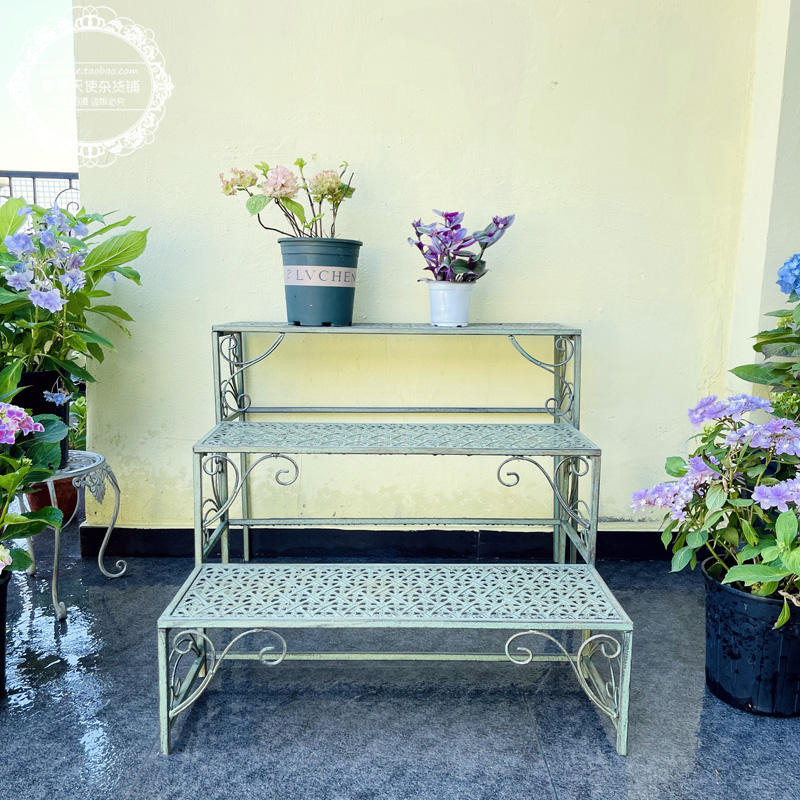 美式乡村复古铁艺分体三层花架花园阳台庭院露台户外置物架花盆架
