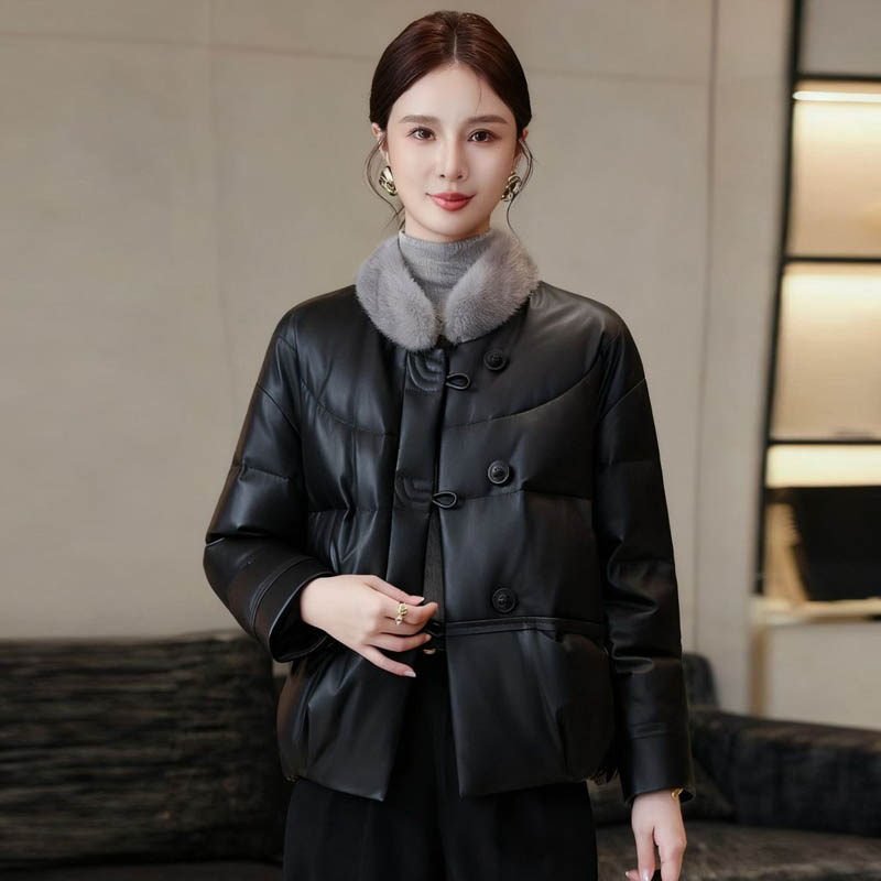 2025新流行绵羊皮羽绒服女短款国风新中式水貂领海宁真皮皮衣外套