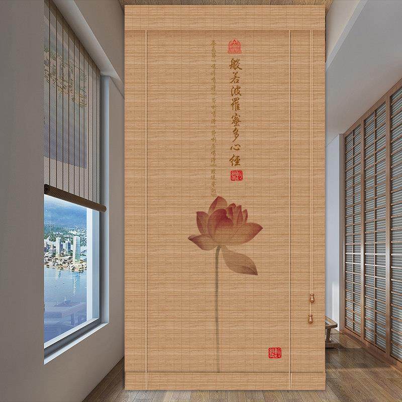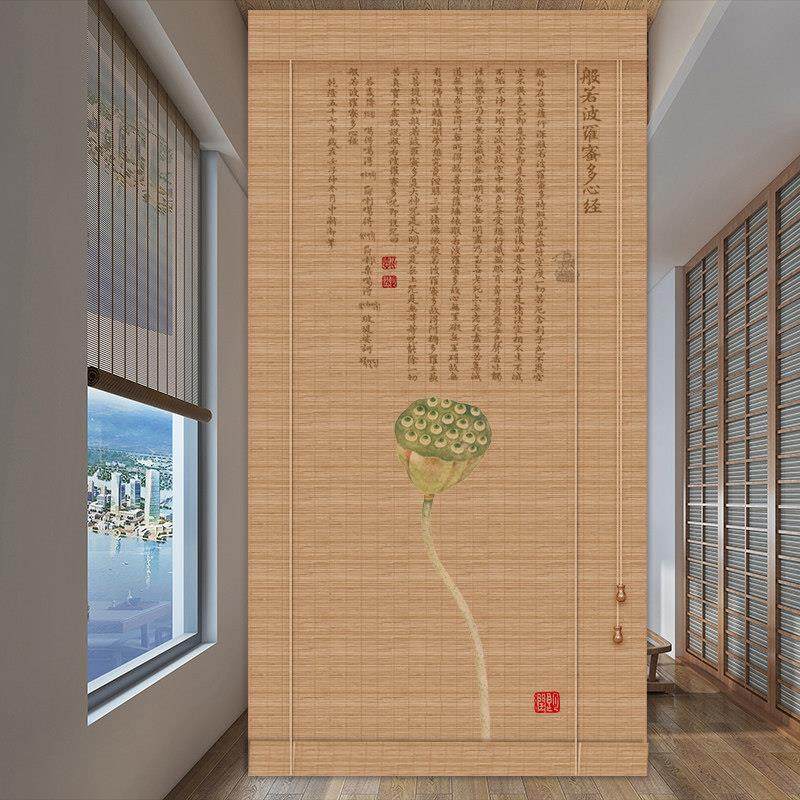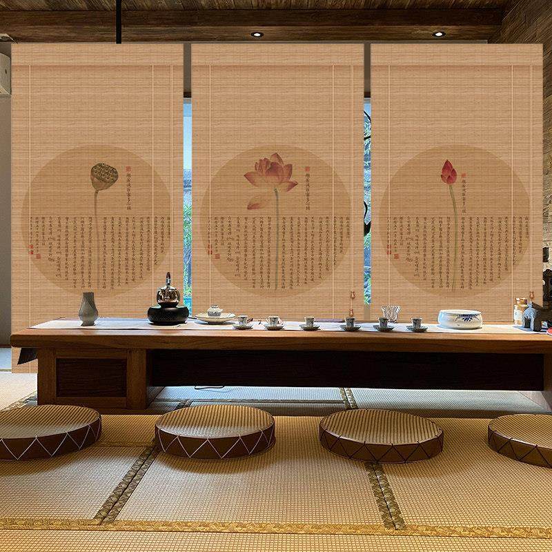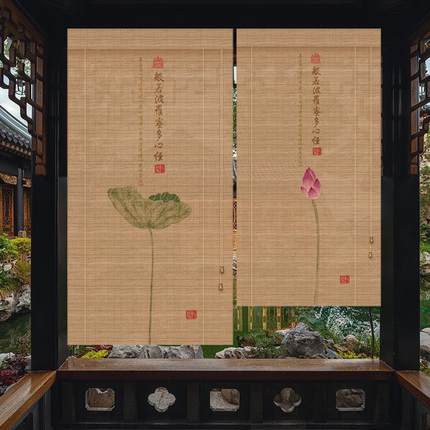 新中式竹帘卷帘茶室复古窗帘隔断遮光遮阳帘民俗饭店背景帘屏风帘